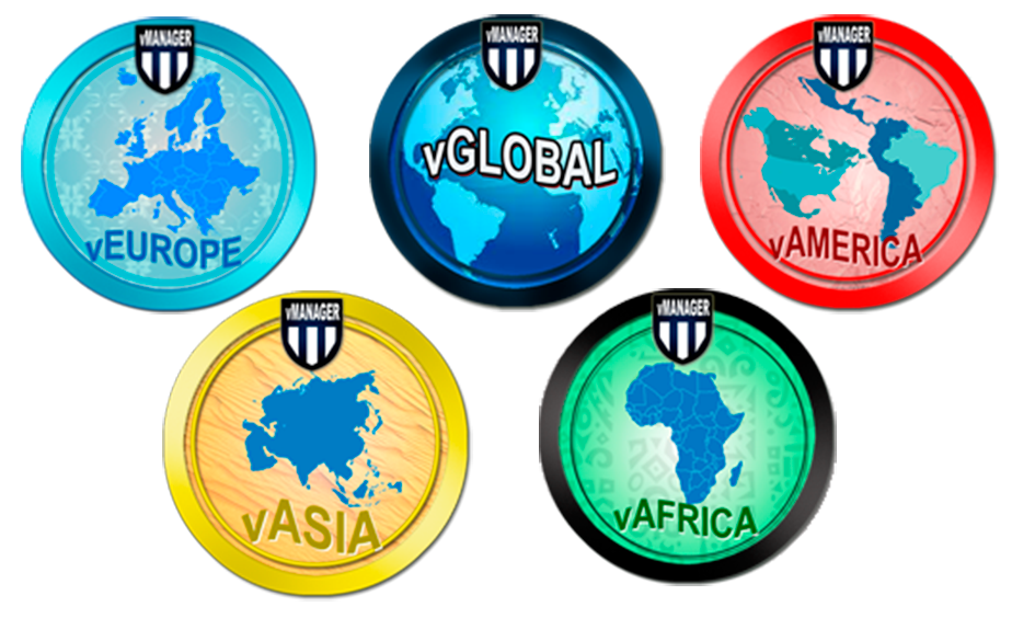 As federações continentais são responsáveis por representar o futebol de seus continentes. No vManager, temos 4 federações continentias. vUEFA (representa todo a Europa), vPANAM (Representa toda a América, incluindo do Norte, Central e do Sul), vAFC (Representa todo o futebol da Asia e da Oceania) e vCAF (Representa todo a África).